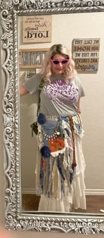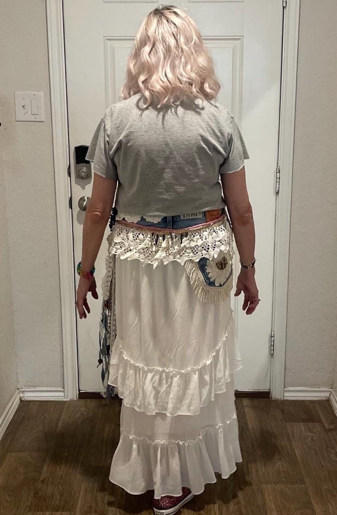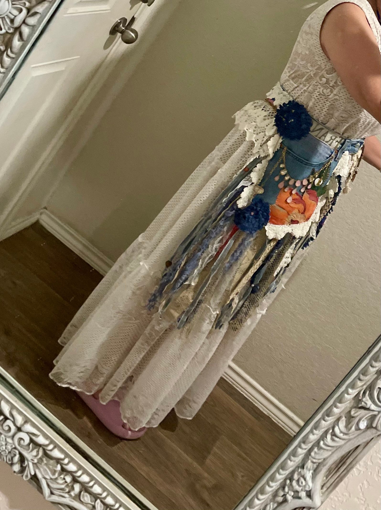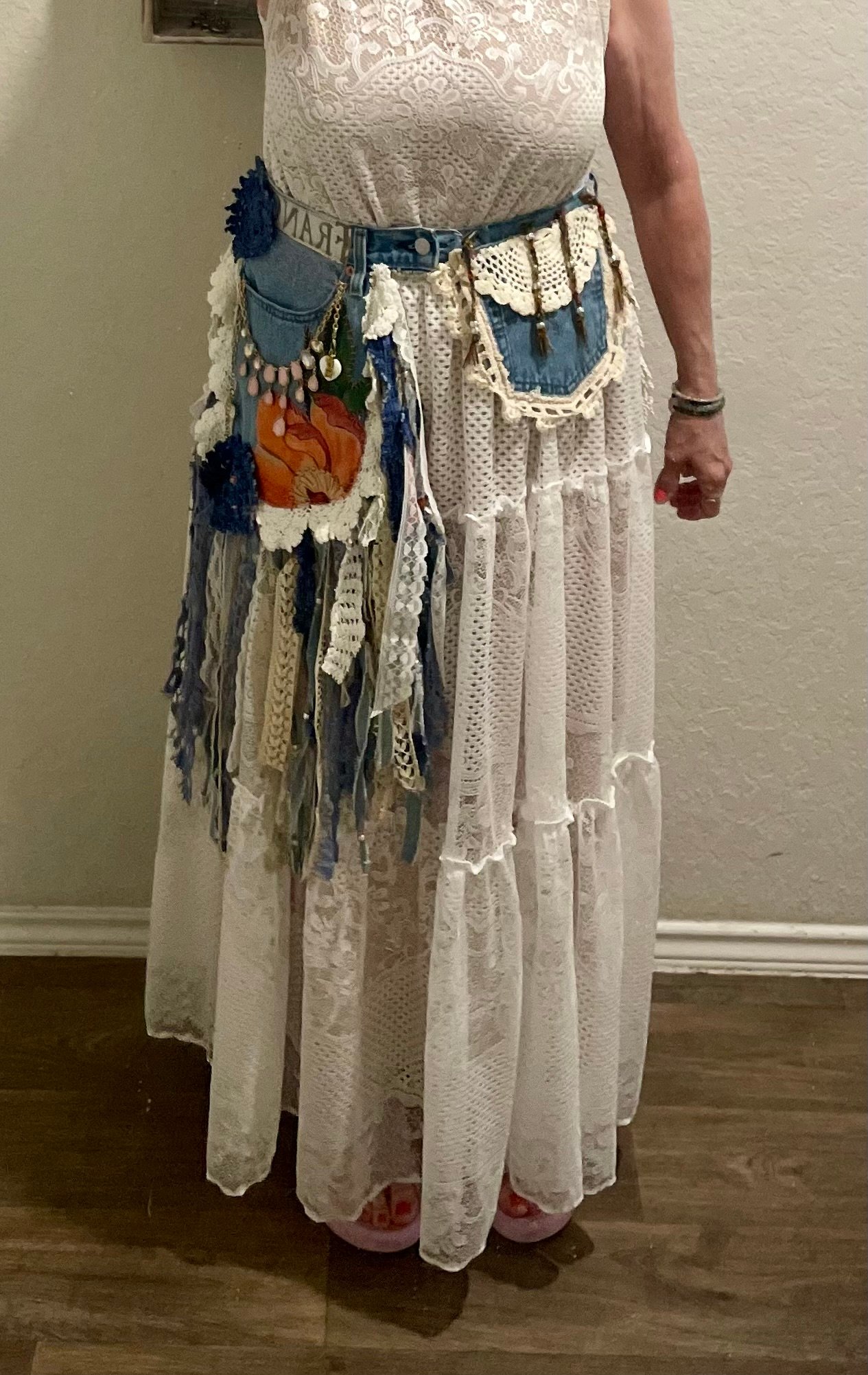 Fringe Pocket Festival Belt Boho Hippie FairyCore Denim Lace 34” Waist Upcycled Handmade