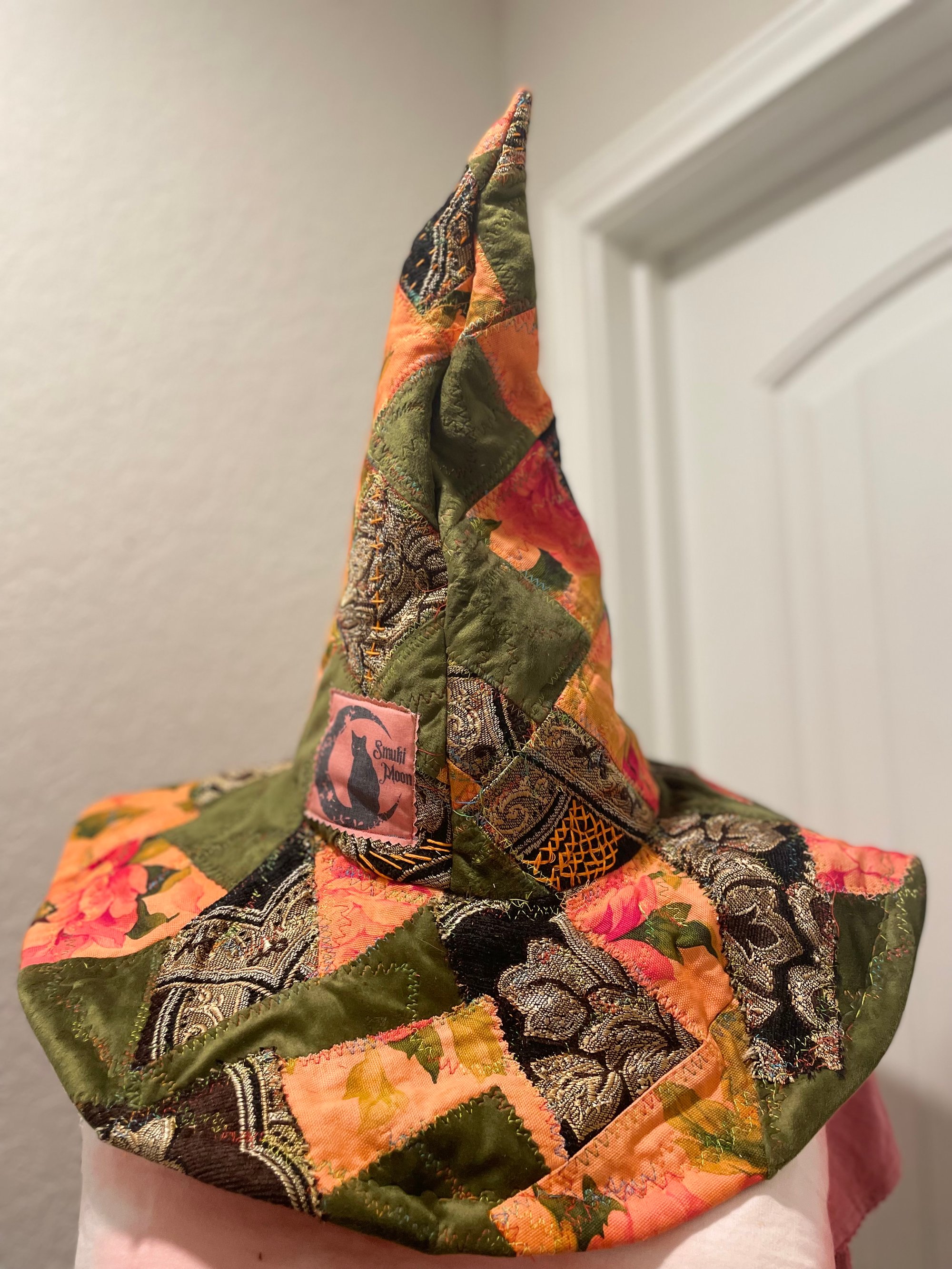 Hand Quilted Scrappy Witch Hat: Bendable Brim, Upcycled Halloween Costume